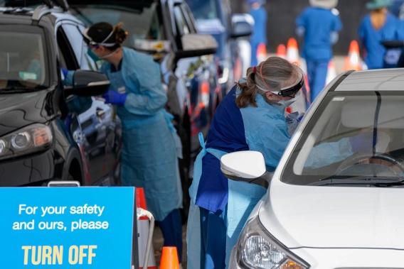 Staff collect samples at a drive-through Covid-19 testing clinic at Bondi Beach in Sydney, Australia, on January 8. Photo / APÂ