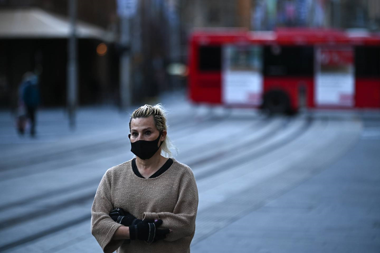 A woman walks through the empty Sydney Central Business District during the city's lockdown. Photo / Getty Images
