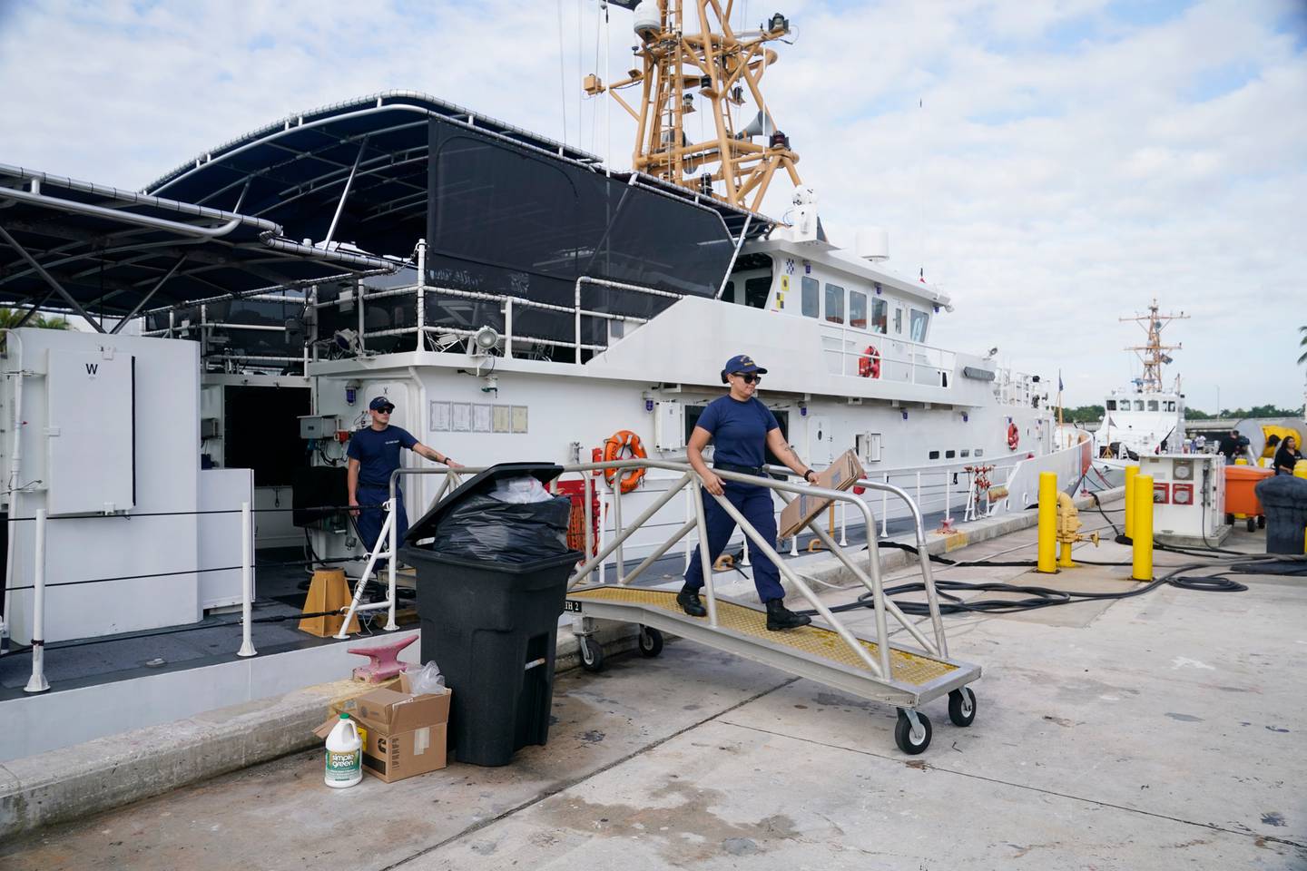 Crew members of the Coast Guard cutter William Flores get ready to go on patrol. Photo / APÂ