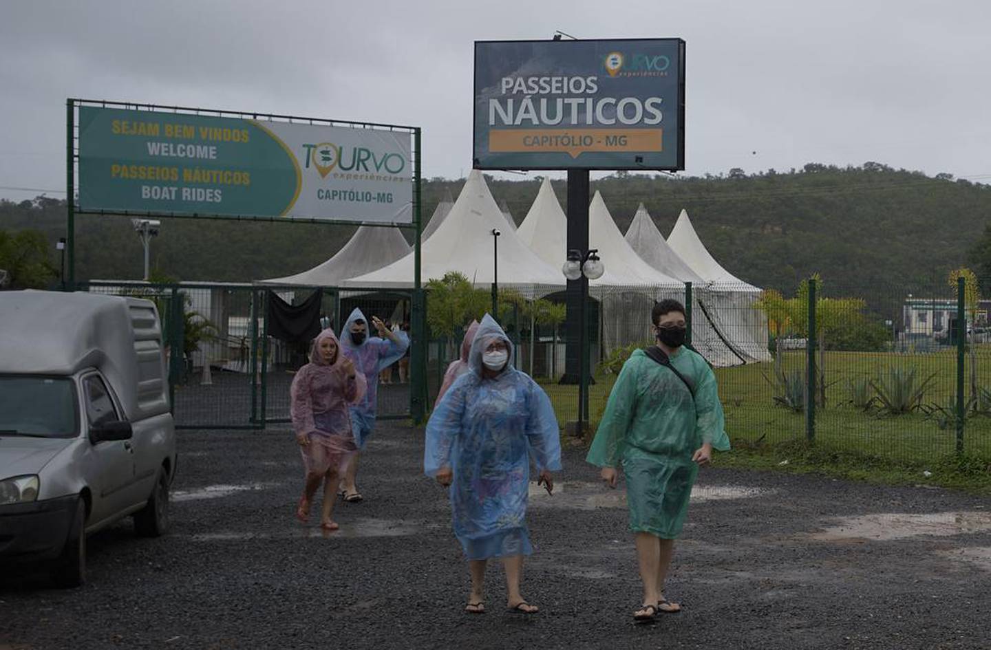Tourists leave a pier at the Furnas reservoir, a day after a massive slab of rock broke away from a cliff and toppled onto pleasure boaters. Photo / APÂ