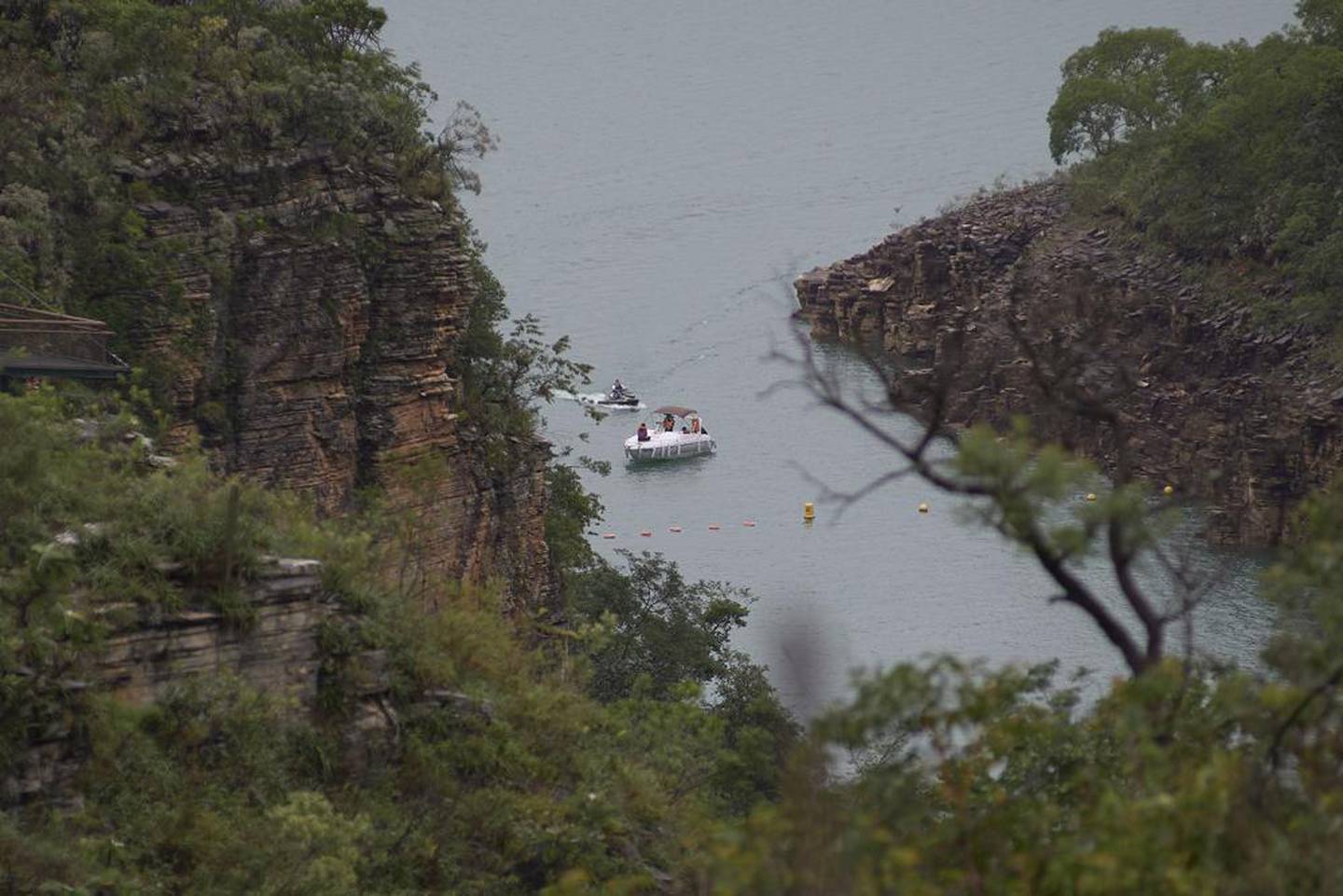 A boat navigates on the Furnas reservoir after a massive slab of rock broke away from a cliff and toppled onto pleasure boaters. Photo / APÂ