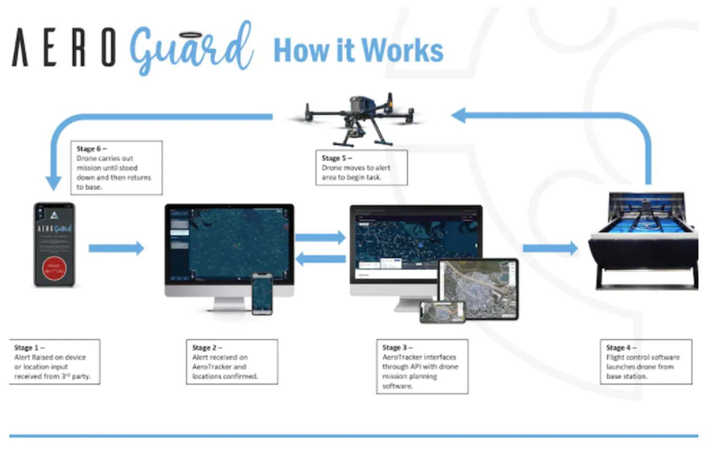 Anyone fearing an attack could summon one of the £35,000 ($69,200) Aeroguard drones via an app to arrive within four minutes. Using AI, it will automatically track the phone signal flying at 200ft monitored from a control room by a qualified pilot ready to take over if needed.Â