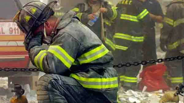A firefighter breaks down affter the World Trade Center buildings collapsed September 11, 2011. (Photo / Mario Tama / Getty)