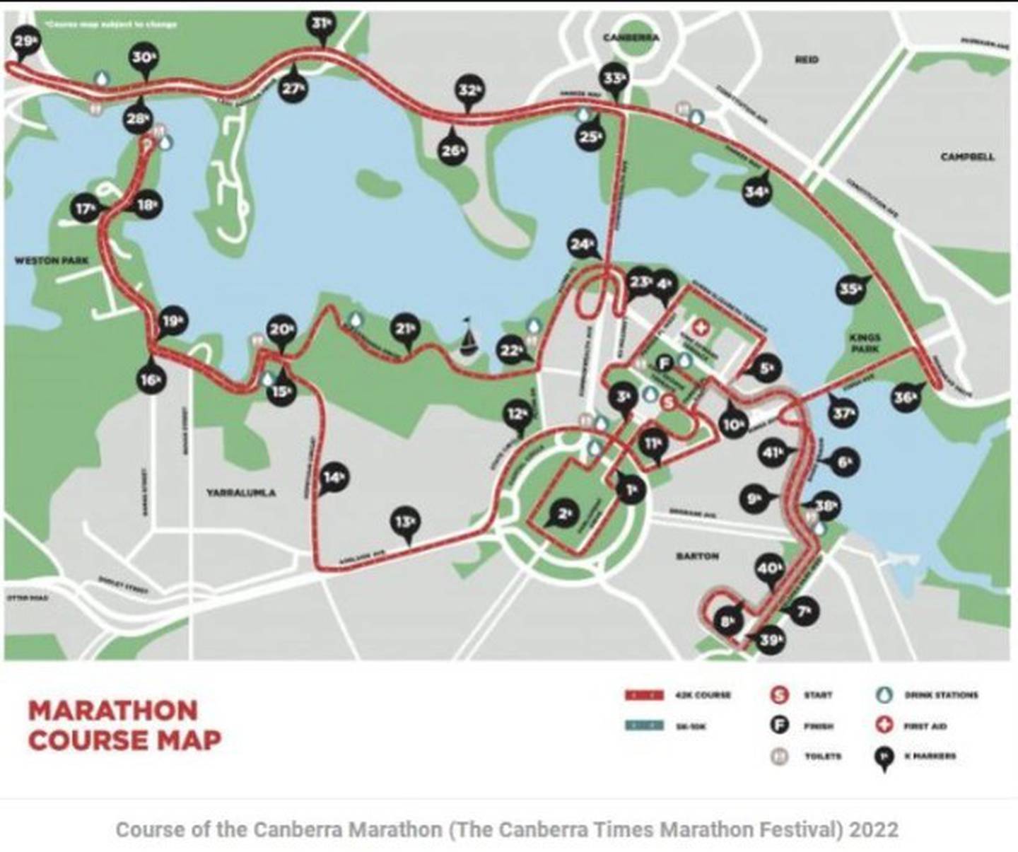 The Canberra Marathon course map. Photo / SuppliedÂ