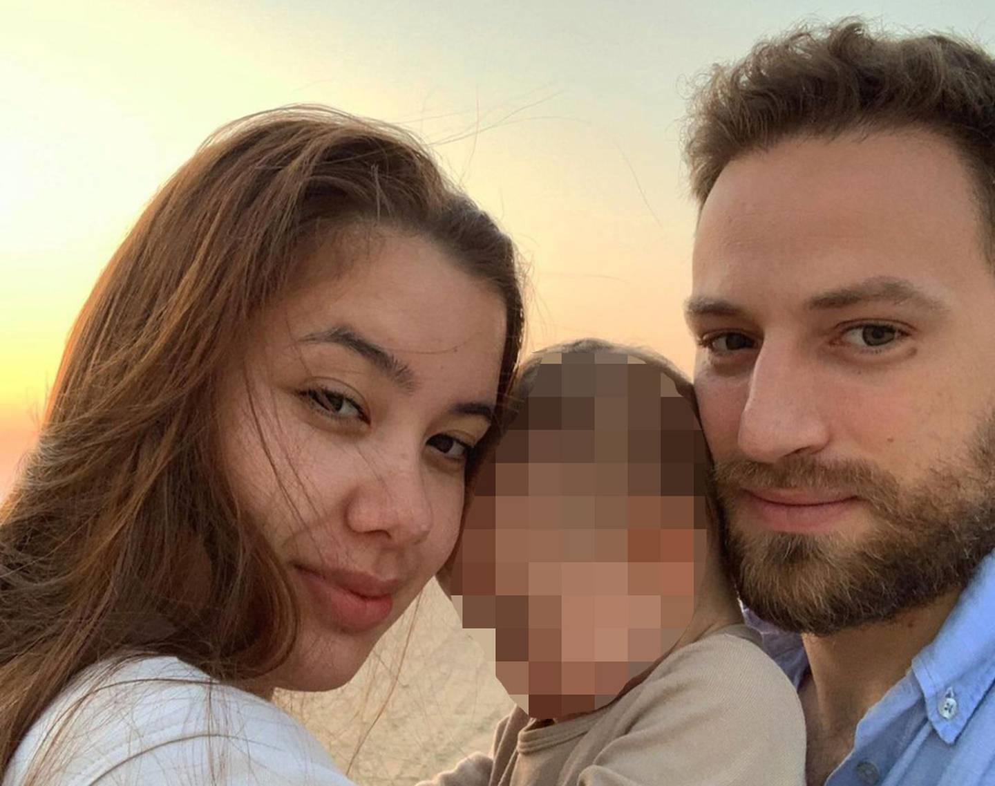 Caroline Crouch and her husband Charalambos Anagnostopoulos pose with their child in a photo posted to social media. (Photo / Instagram)