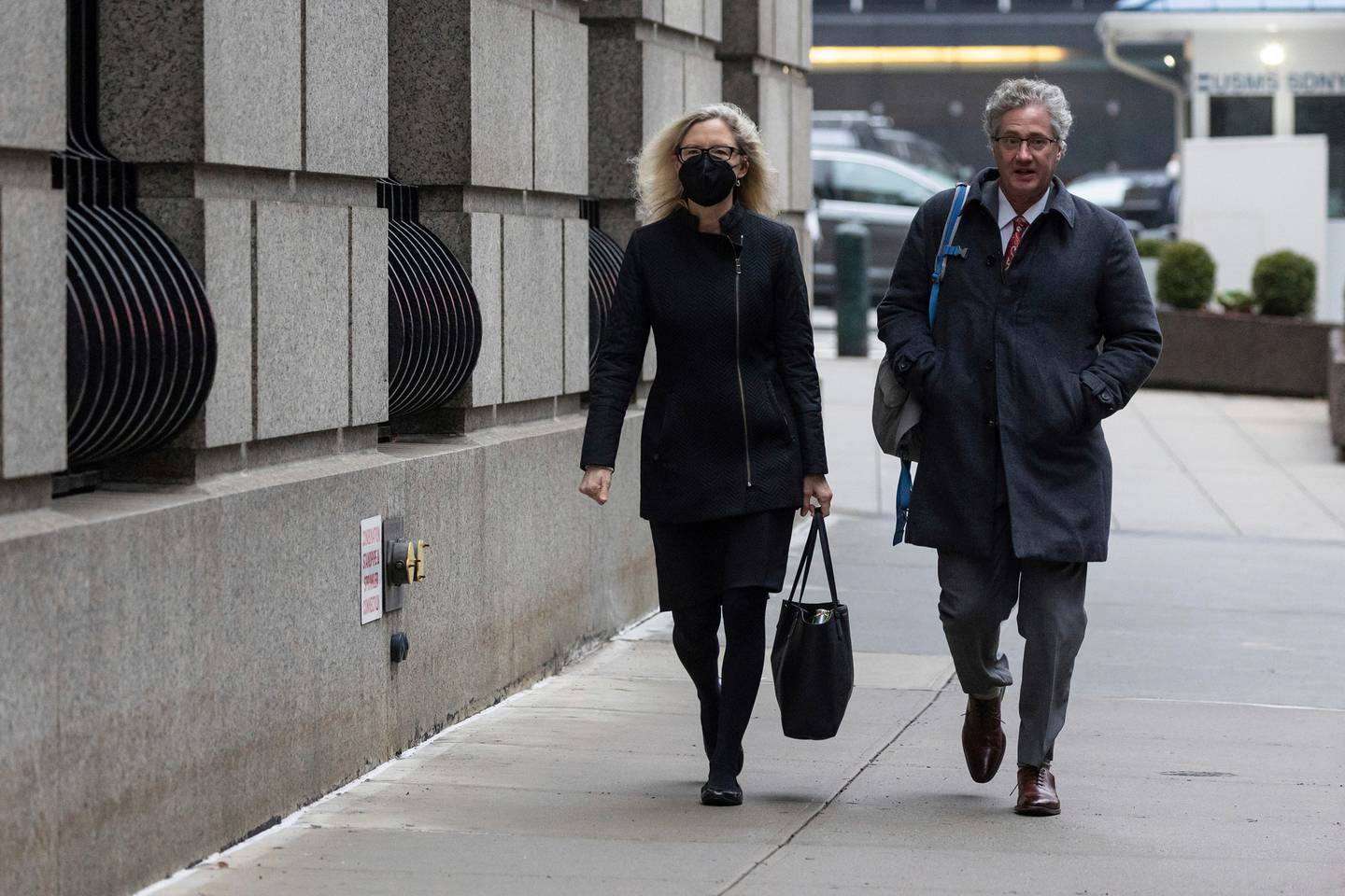 Laura Menninger (left), and Jeffery Pagliuca defence attorneys for Ghislaine Maxwell, arrive at the federal courthouse where Maxwell is on trial for sex trafficking. Photo / APÂ