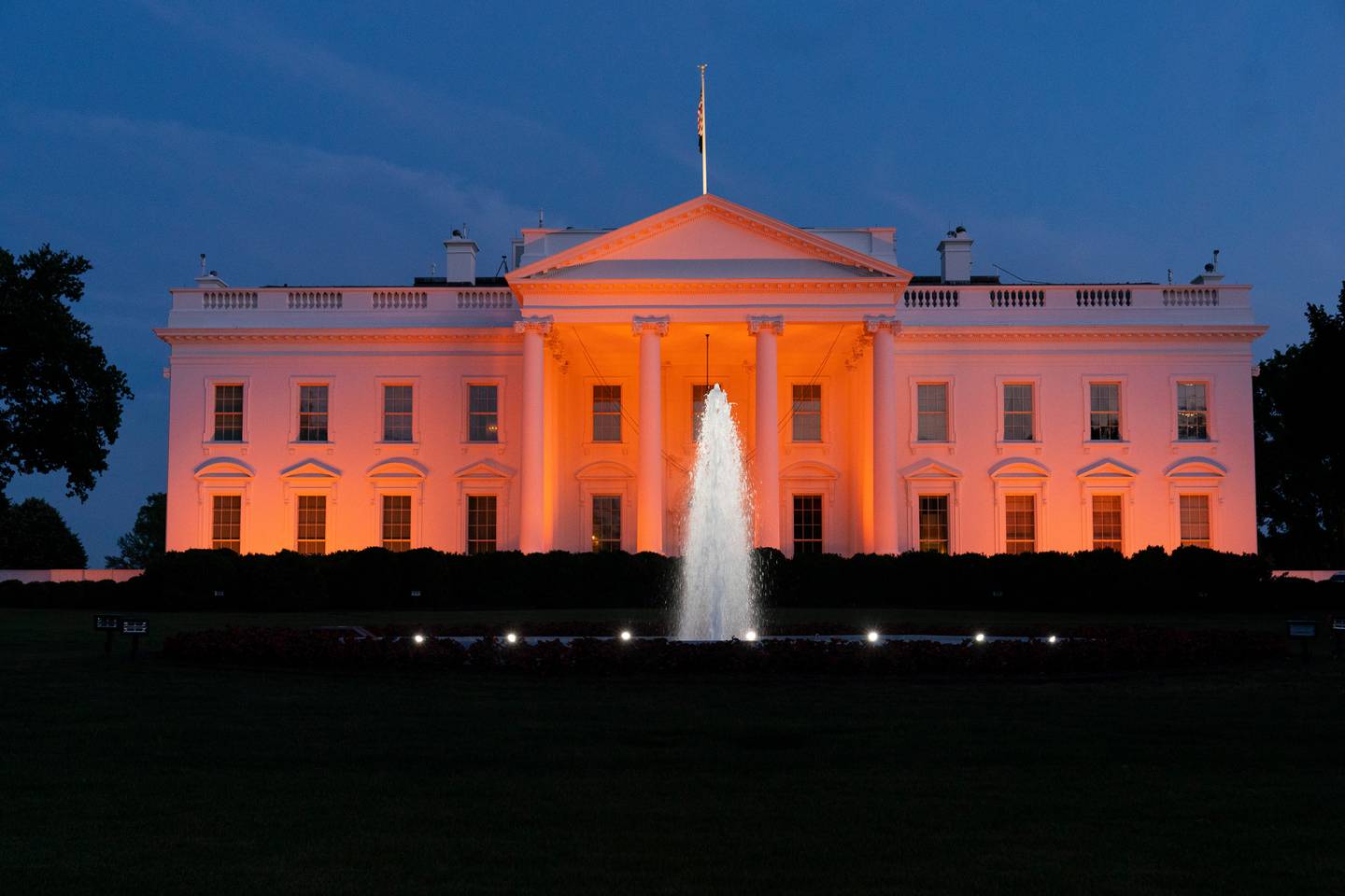 The White House is illuminated with orange lights in honour of National Gun Violence Awareness Day on Friday. Photo / APÂ