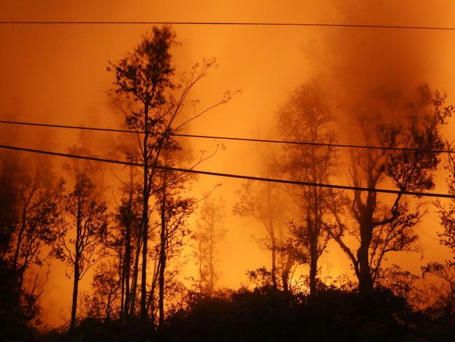 Lava illuminates volcanic gases from the Kilauea volcano. Picture: GettySource:AFP