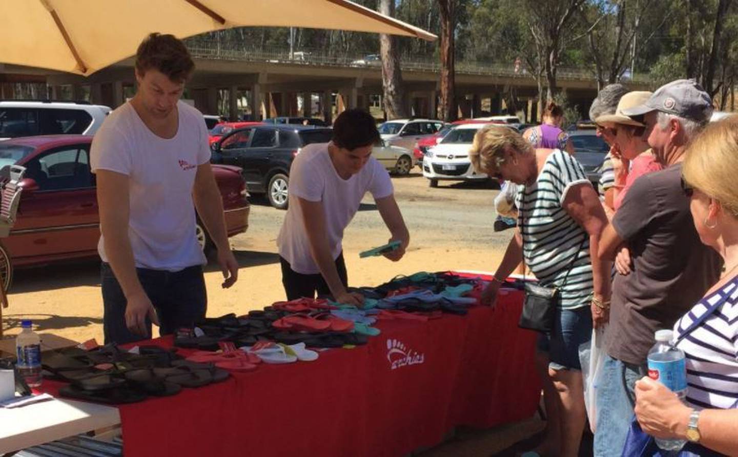 Once the business overcame a few manufacturing hurdles and had a solid product, Jones started selling the thongs at local farmers markets including in his home town on the NSW and Victorian border.Â