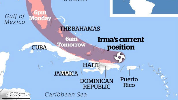 The US Hurricane Centre said Irma will bring "life threatening" wind, rain and storm surge to the Turks and Caicos Islands and Bahamas over the next two days.