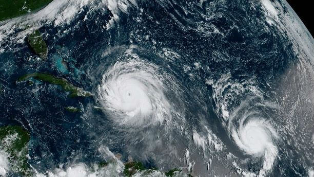 The eye of Hurricane Irma, left, is just north of the island of Hispaniola, with Hurricane Jose, right, in the Atlantic Ocean. (Photo / AP)