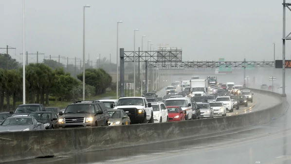 Northbound traffic on the turnpike near Sunrise Blvd. is backed up in the rain as motorist prepare for Hurricane Irma. (Photo / AP)