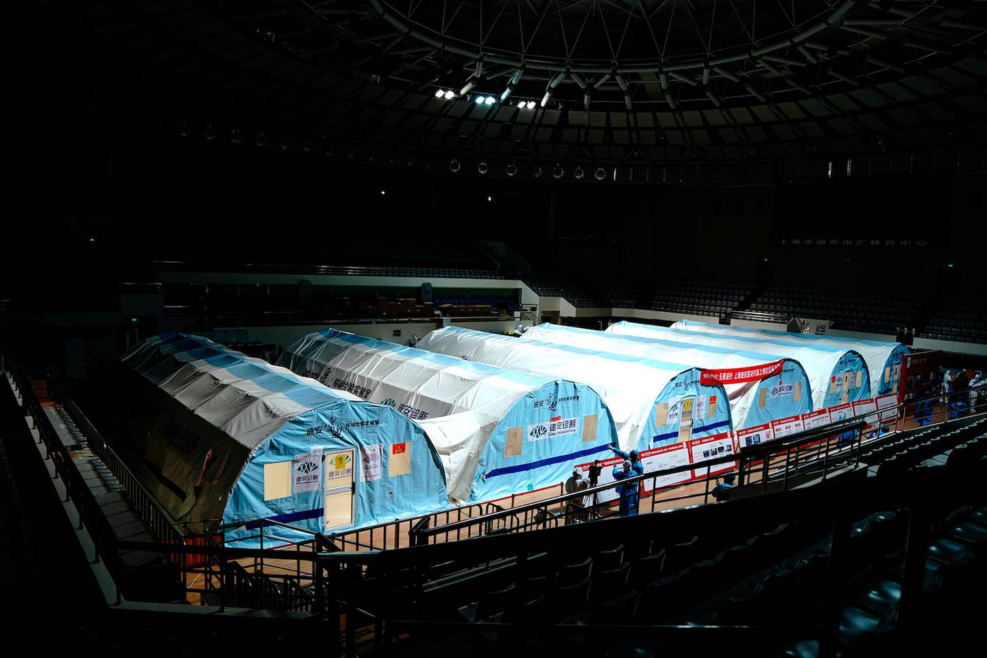 A temporary Covid-19 testing lab is seen in an arena in Shanghai, China. Photo / APÂ
