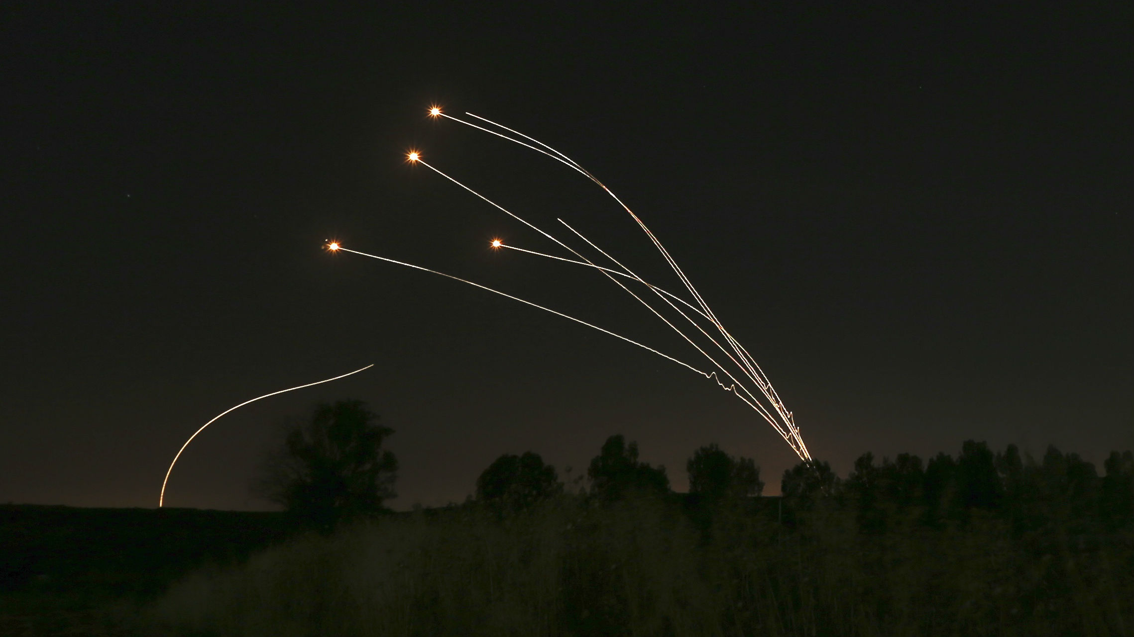Palls of gray smoke rose in Gaza, as Israeli airstrikes struck apartment towers and blasted multiple Hamas security installations. In Israel, hundreds of rockets fired by Gaza's Hamas rulers and other militants at times overwhelmed missile defenses and sent air-raid sirens and explosions echoing across Tel Aviv, Israel's biggest metropolitan area, and other cities.