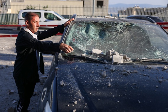 A man clears debris from a car damaged during a rocket attack from southern Lebanon that targeted the northern Arab-Israeli village of Deir al-Asad yesterday. Photo / AFP