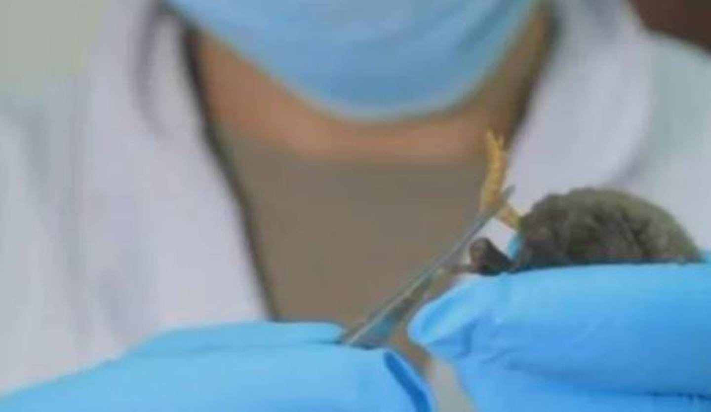 Footage of a scientist at the Wuhan Institute of Virology feeding a worm to a bat. (Photo / Sky News)