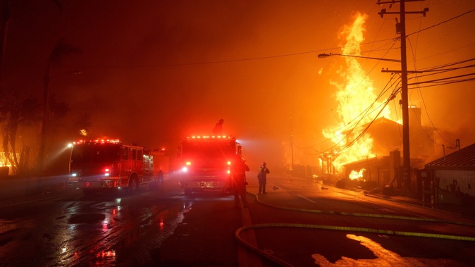 Flames from the Palisades fire burned homes along Pacific Coast Highway at the start of the year in Malibu, California. Photo / Getty Images