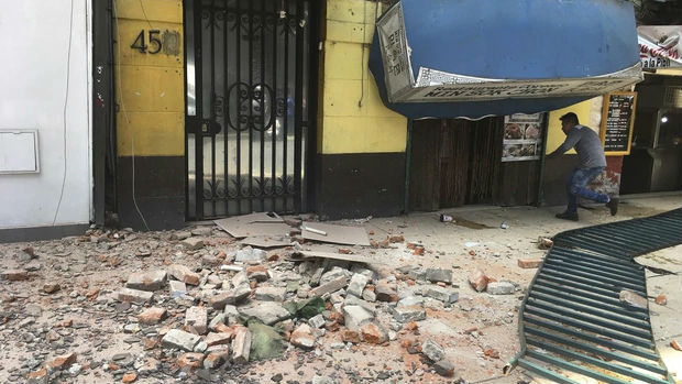 In the Roma neighbourhood, which was struck hard by the 1985 quake, piles of stucco and brick fallen from building facades littered the streets. At least one large parking structure collapsed. Two men calmed a woman seated on a stool in the street, blood trickling form a small wound on her knee.