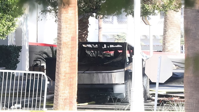 The moment a Tesla Cybertruck explodes outside the Trump hotel in Las Vegas. Photo / Twitter