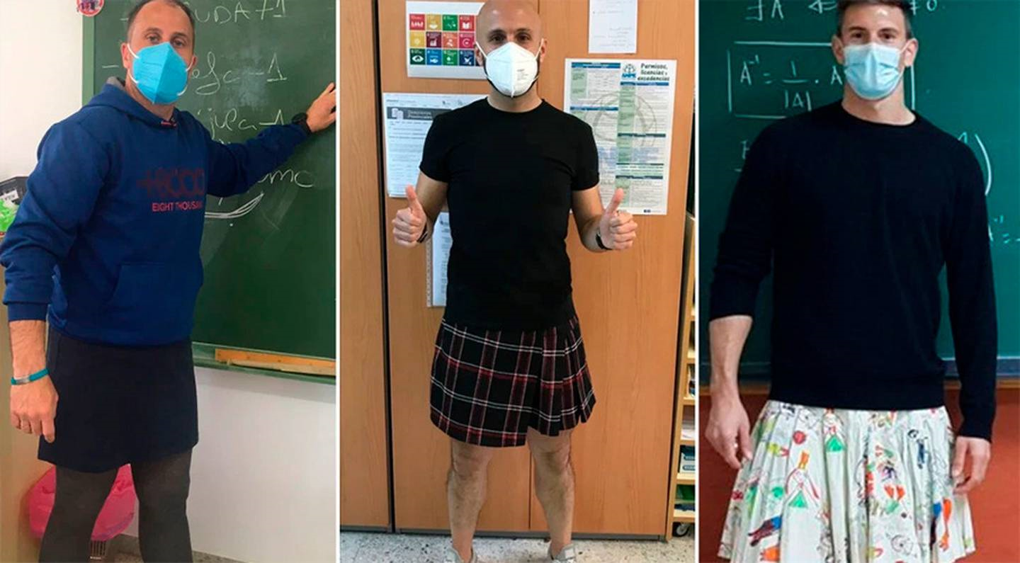 It all kicked off when math teacher Jose Piñas wore a skirt in class after 15-year-old student Mikel Gómez was kicked out of school for wearing the same item.