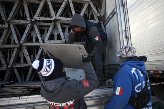In an empty lot in Ciudad Juarez, which neighbours Texas, cranes lifted metal frames for tent shelters.