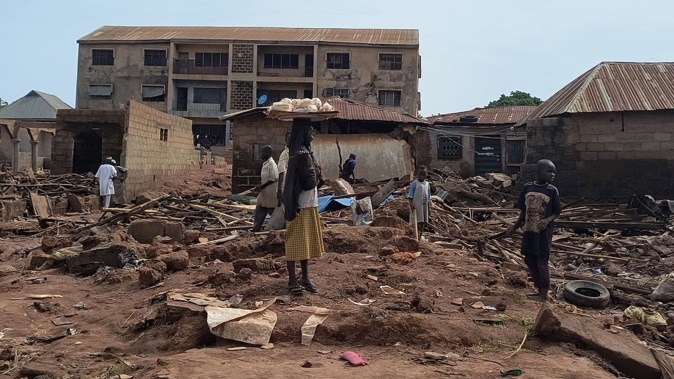 A general view of damaged buildings in Mokwa. Photo / AFP