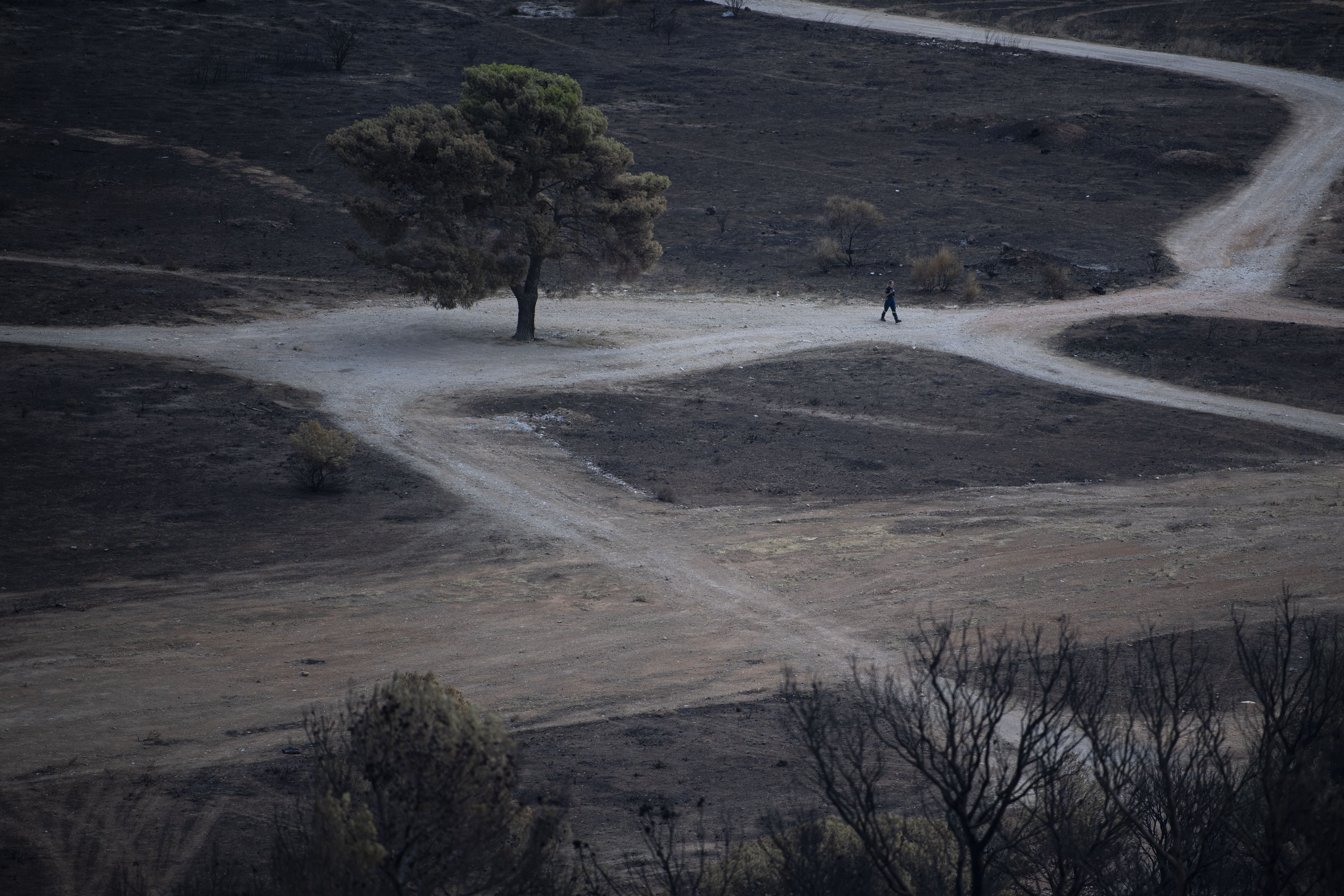 A scorched tree stands among burned forest in Acharnes suburb, on Mount Parnitha, in northwestern Athens, Greece, Sunday, Aug. 27, 2023. Photo / AP