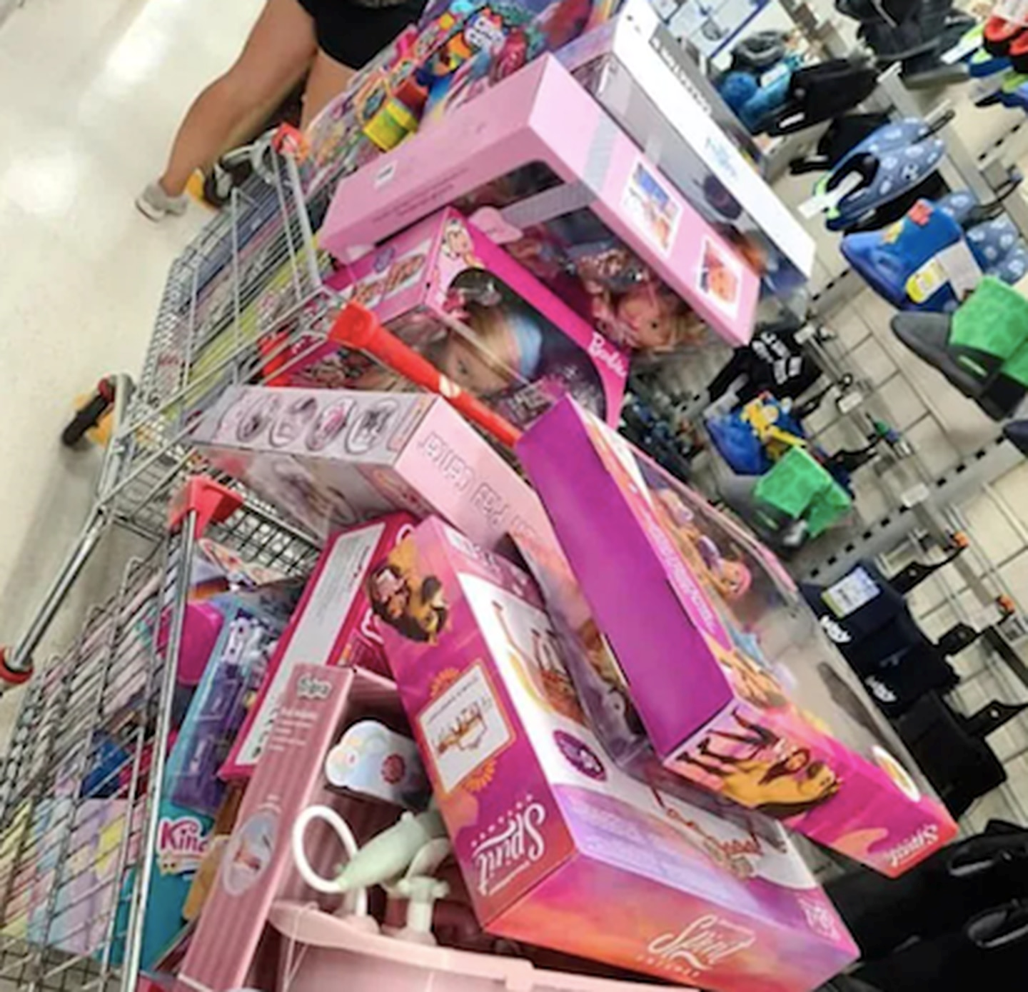 The mum bought three trolley's full of toys and shared snaps of her shopping spree in a Facebook group. (Photo / Facebook)