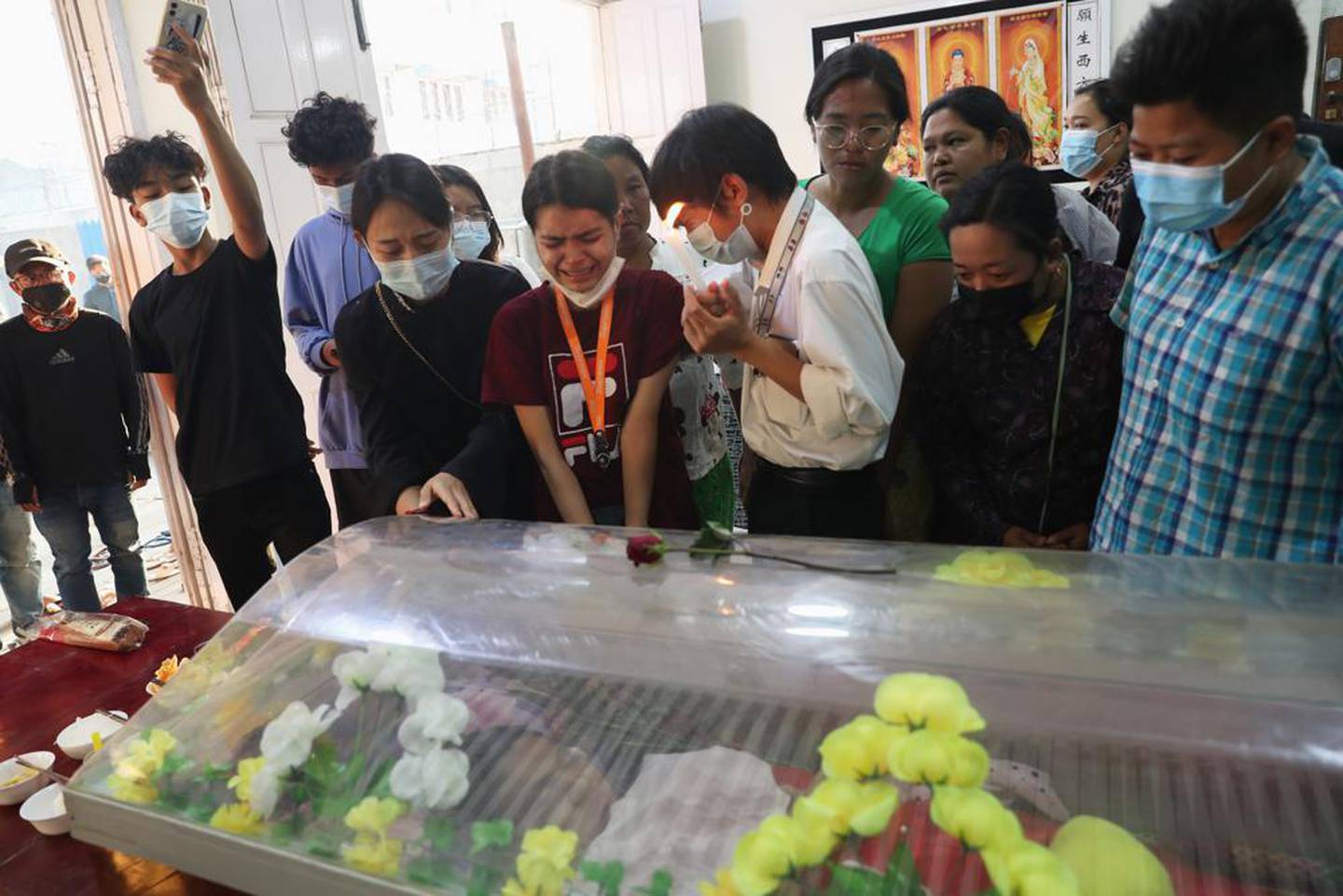 People mourn as they view the body of Kyal Sin, a 20-year-old university student who was shot in the head while she attended an anti-coup protest rally. Photo / APÂ