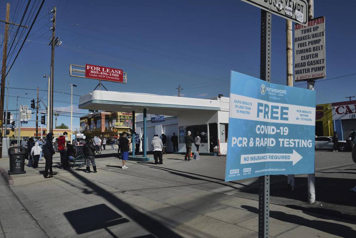 People line up for a free Covid-19 rapid test at a gas station in the Reseda section of Los Angeles, as California braces for a post-holiday virus surge. Photo / APÂ