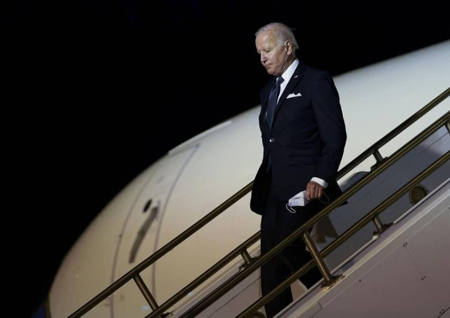 President Joe Biden walks down the steps of Air Force One. Photo / APÂ