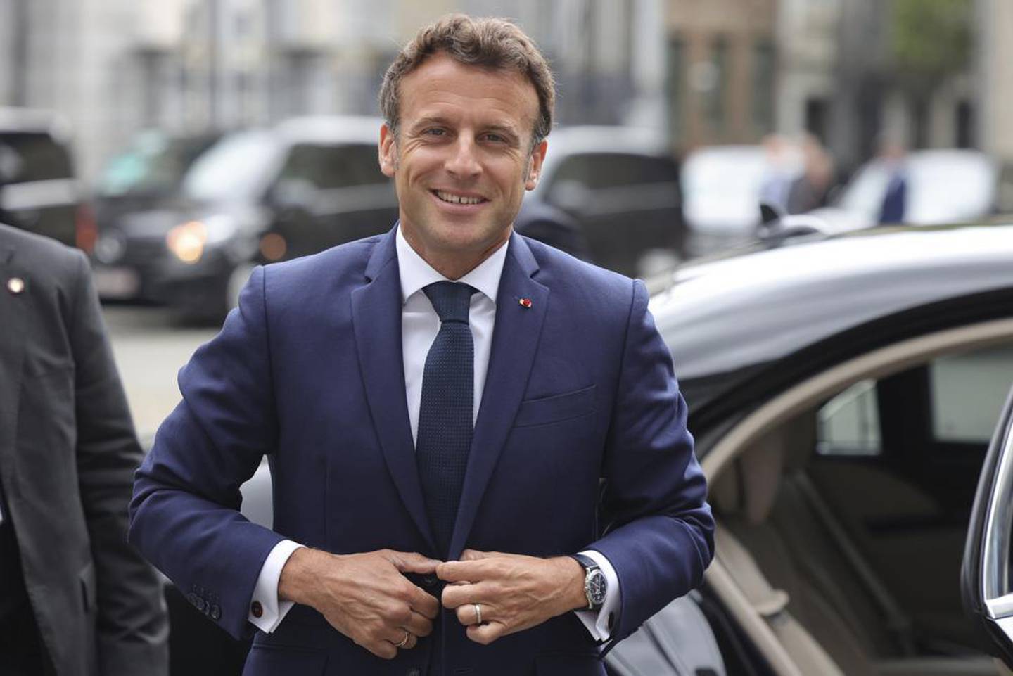 French President Emmanuel Macron arrives for the extraordinary meeting of EU leaders to discuss Ukraine. Photo / AP