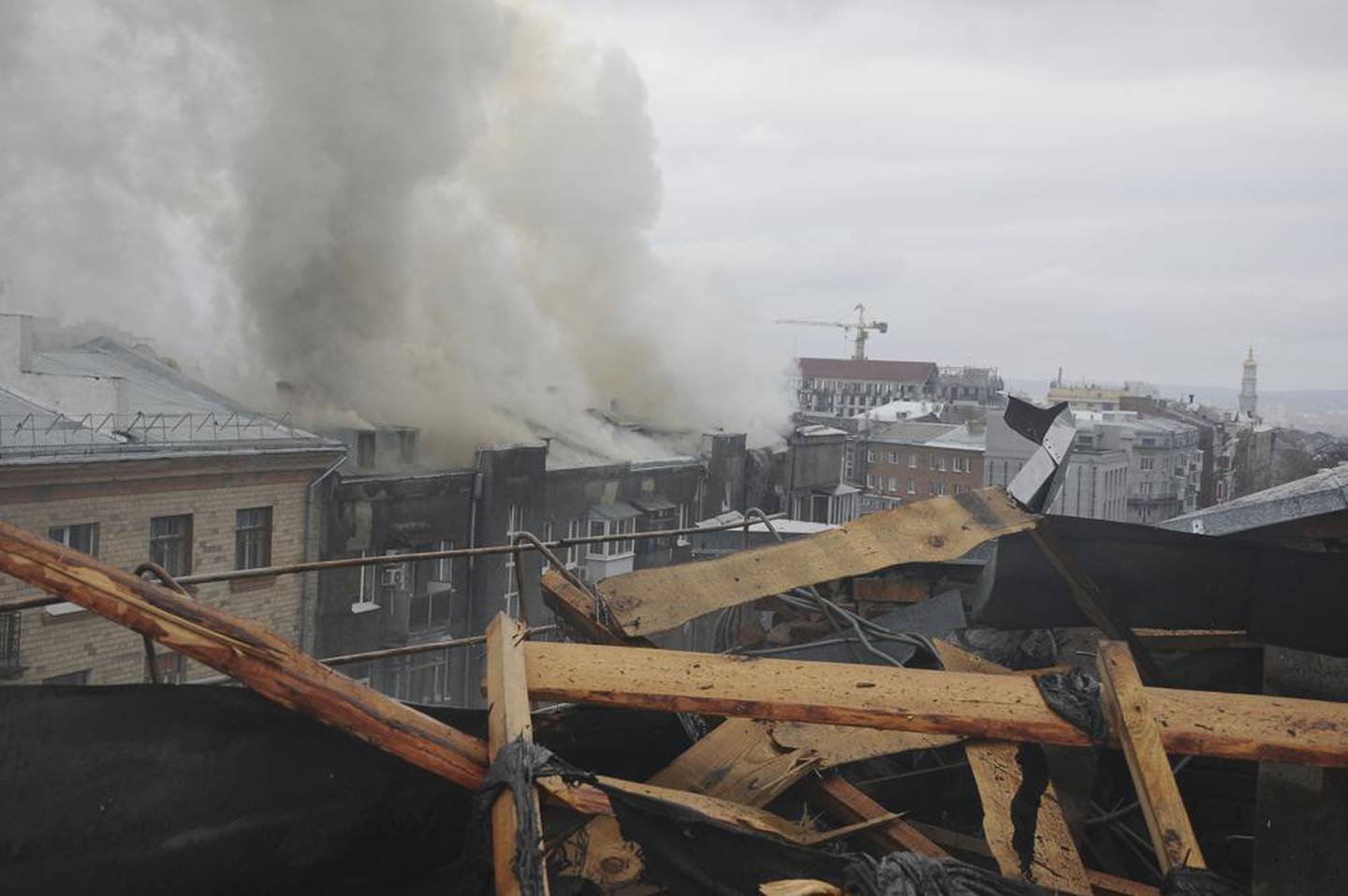 Smoke rises over an apartment building after a Russian attack in Kharkiv, Ukraine. Photo / APÂ