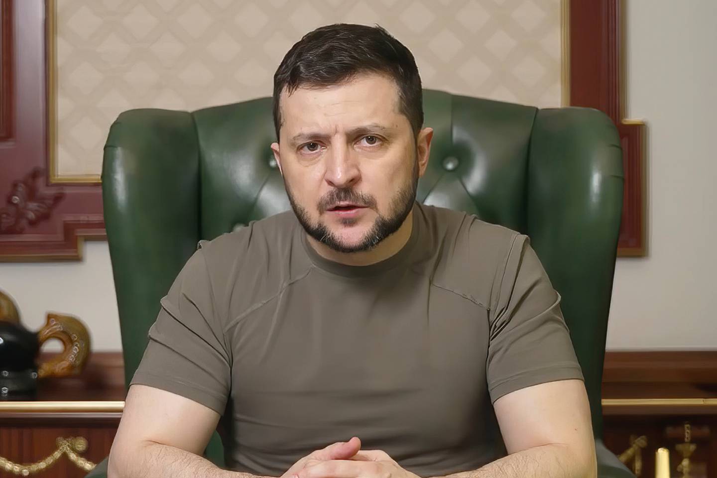Ukrainian President Volodymyr Zelenskyy speaks from Kyiv, Ukraine, on April 12, 2022. Photo / APÂ