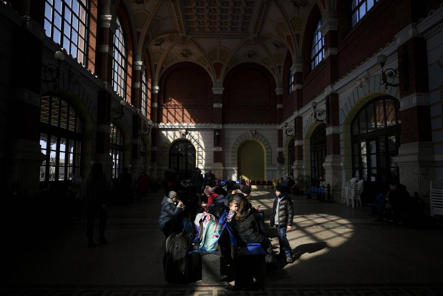 Refugees fleeing the war in neighbouring Ukraine sit in the waiting room of the Suceava railway station in Romania. Photo / APÂ