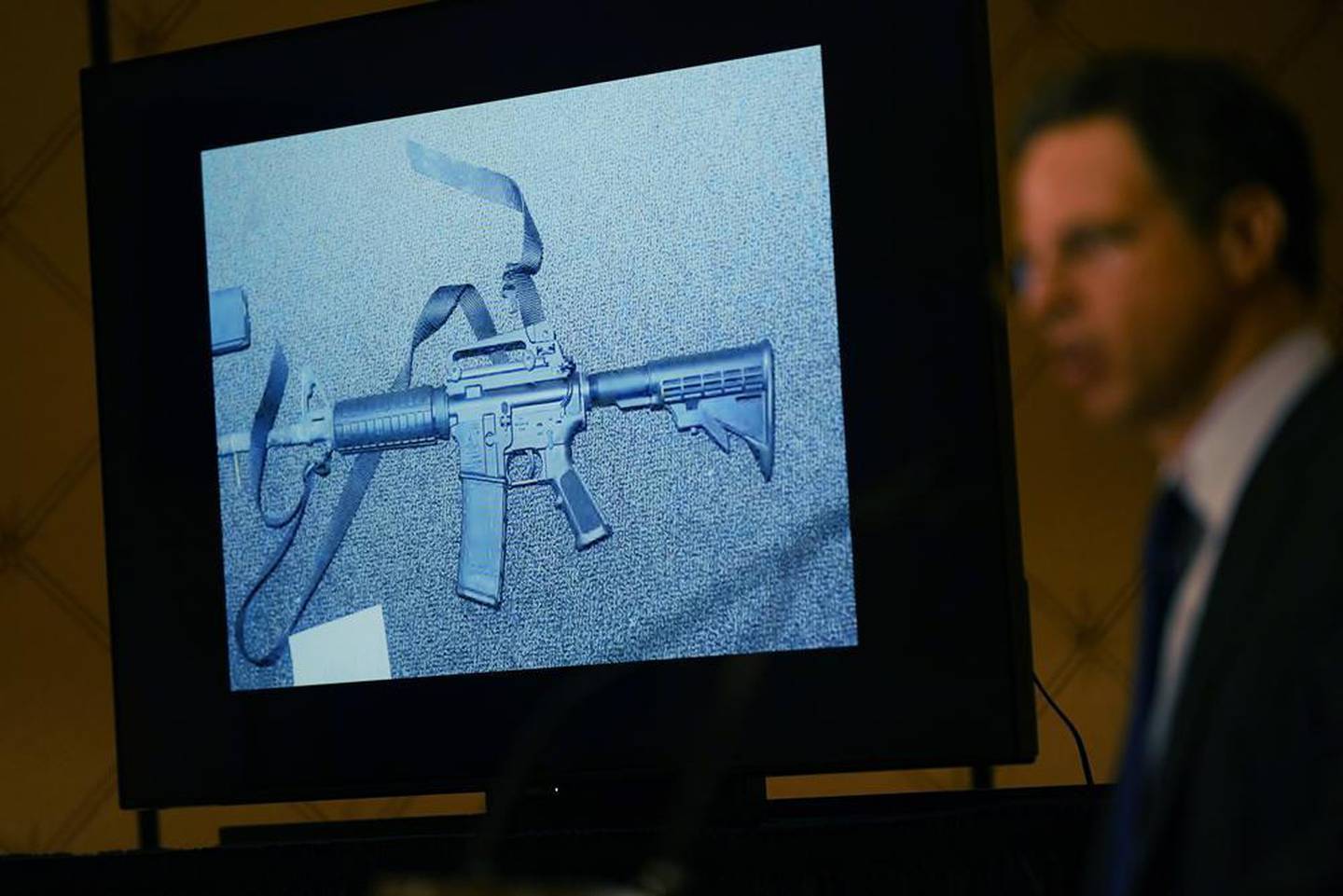 An image of the weapon used during the Newtown shooting is displayed while attorney Josh Koskoff speaks. Photo / APÂ