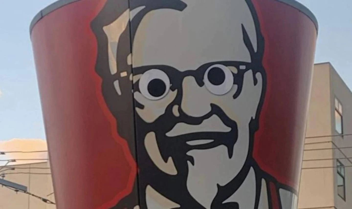 Colonel Sanders on the bucket of the KFC in Eastwood has a new set of eyes. Photo / ABC NewsÂ