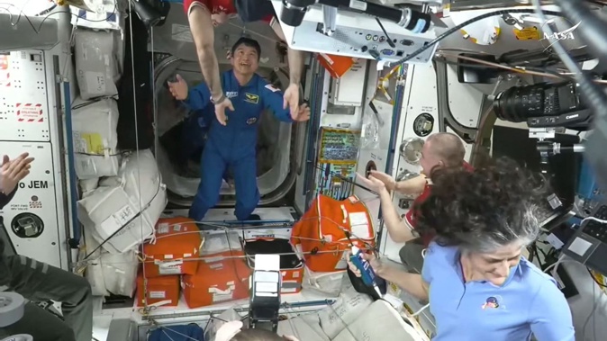 William said it was a “wonderful day” and “great to see our friends arrive”, speaking shortly after her colleagues emerged onto the orbital lab.
