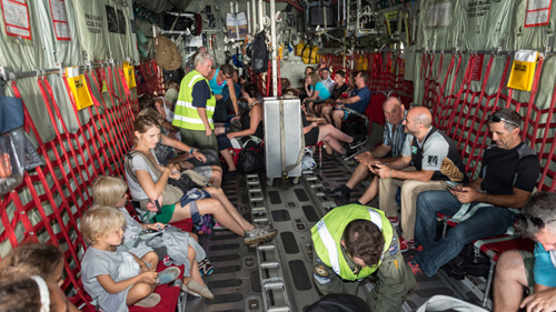 New Zealanders being flown back from Vanuatu by the NZ Defence Force. (Supplied - NZDF)