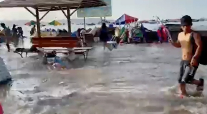Tidal surges flood a market of a coastal town in Peru. Photo / via TwitterÂ