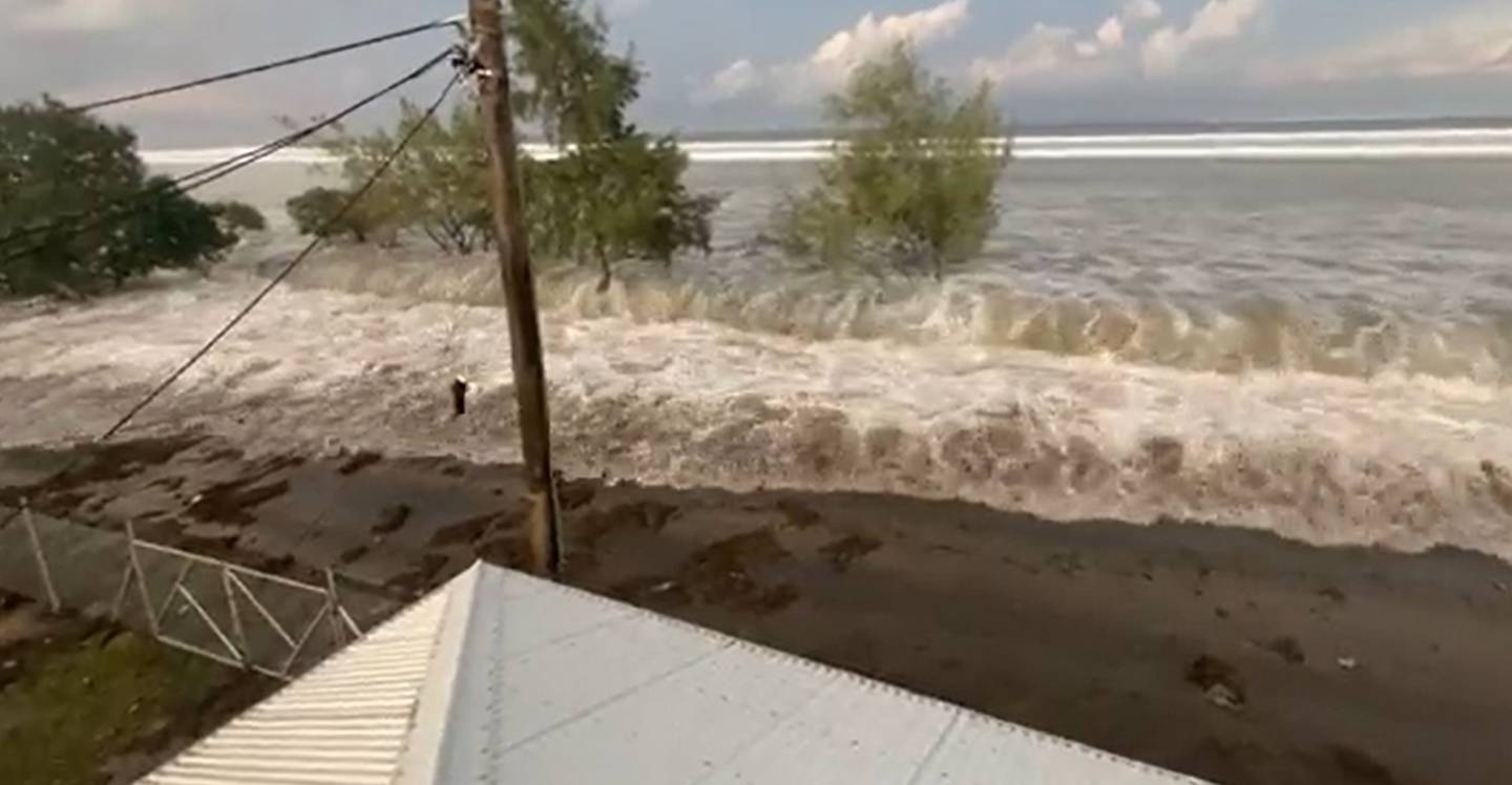 Footage posted on Twitter shows the waves coming ashore in Tonga. Photo / via TwitterÂ