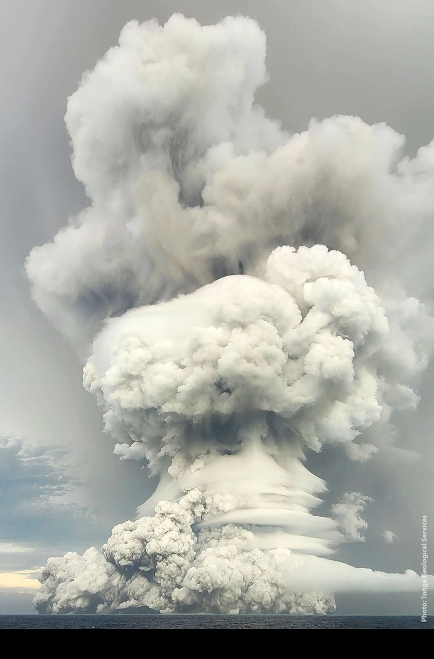 Tonga Geological Services says the plumes of gas, smoke and ash reached 20km into the sky.Â