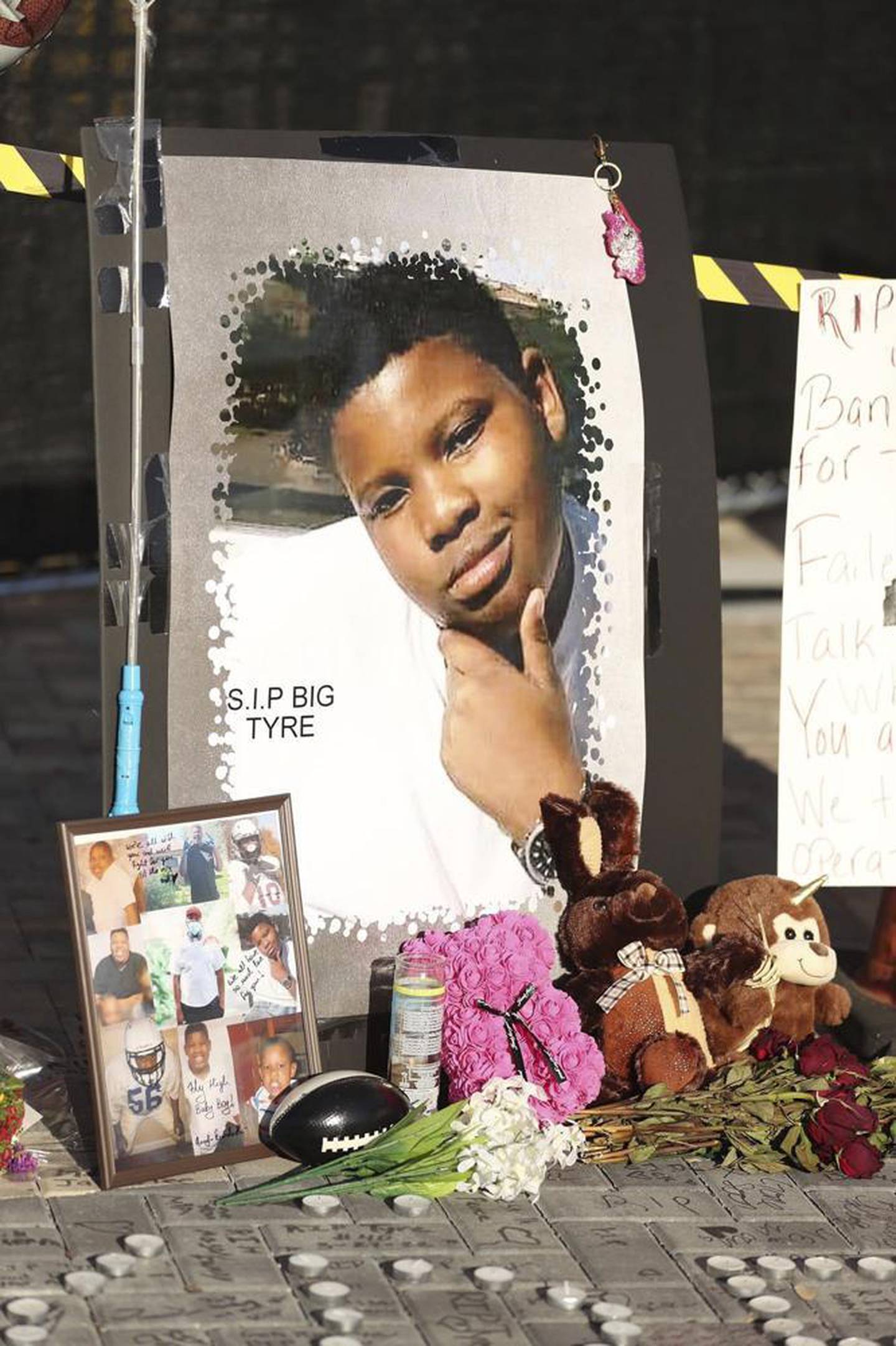 Family members and friends of Tyre Sampson leave items during a vigil in front of the Orlando Free Fall drop tower in ICON Park in Orlando. Photo / APÂ