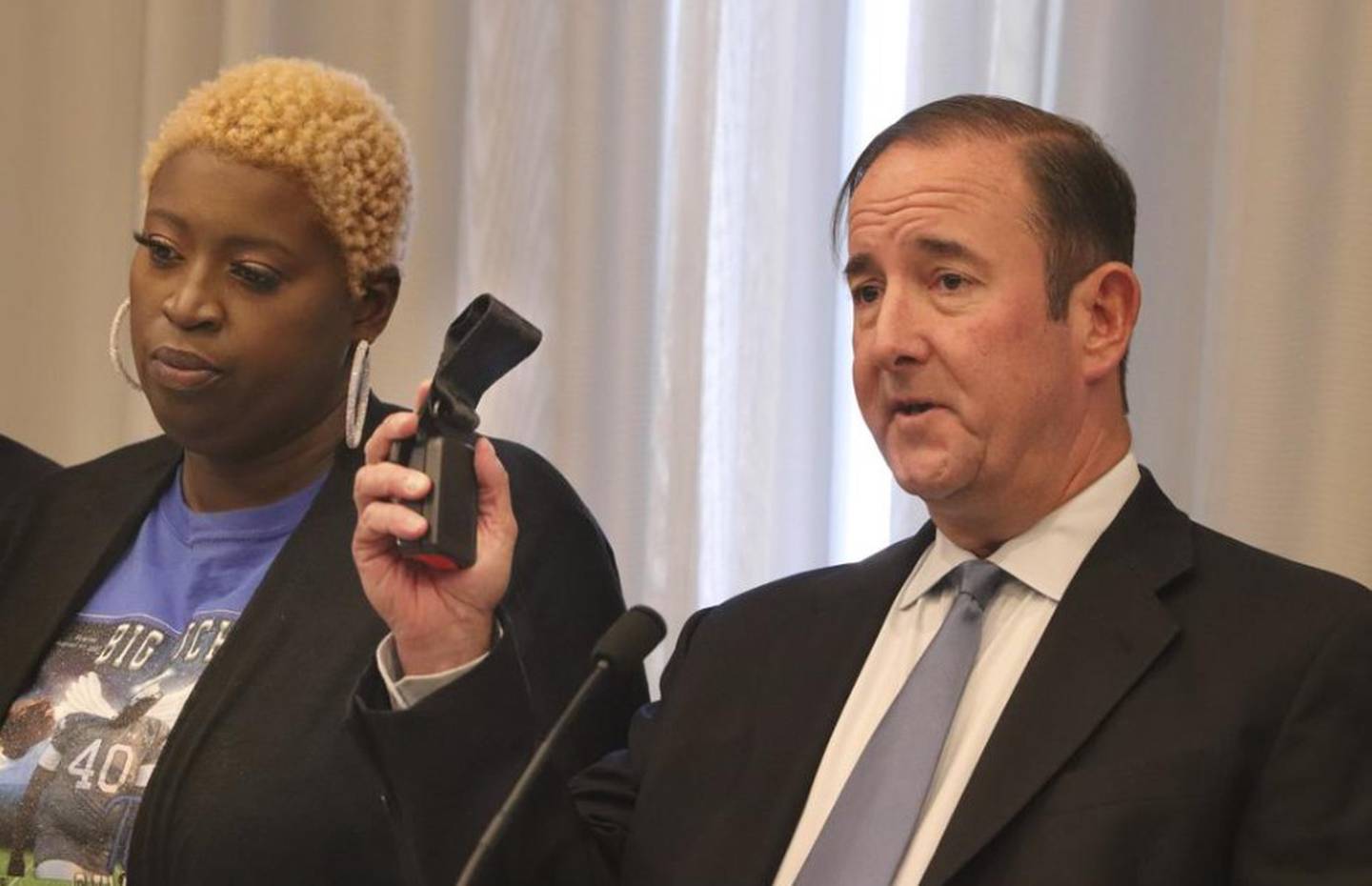 Michael Haggard, lawyer for Nekia Dodd, left, the mother of Tyre Sampson speaks at a news conference. Photo / APÂ
