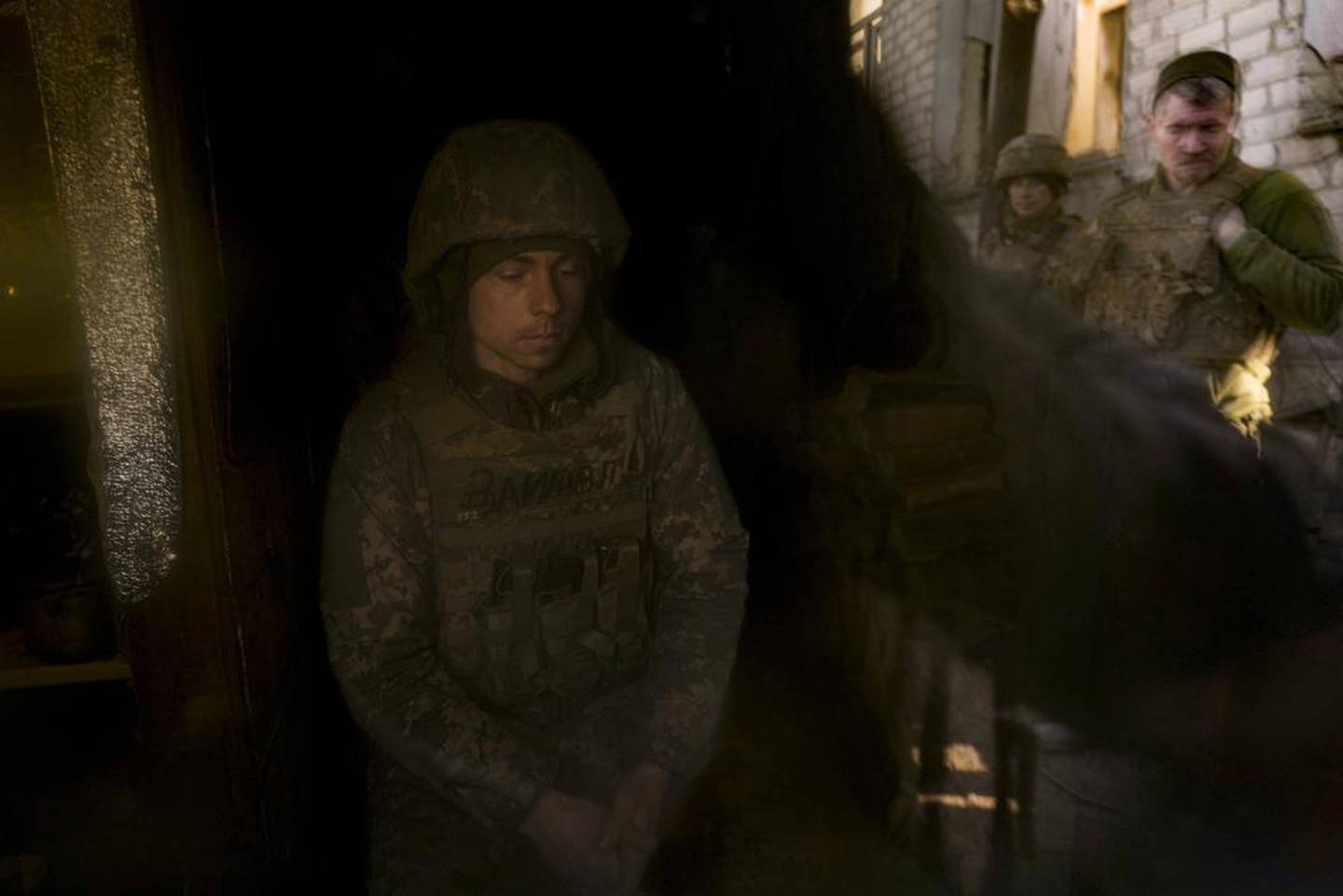 A Ukrainian serviceman sits in an observation point near the frontline village of Krymske. Photo / APÂ