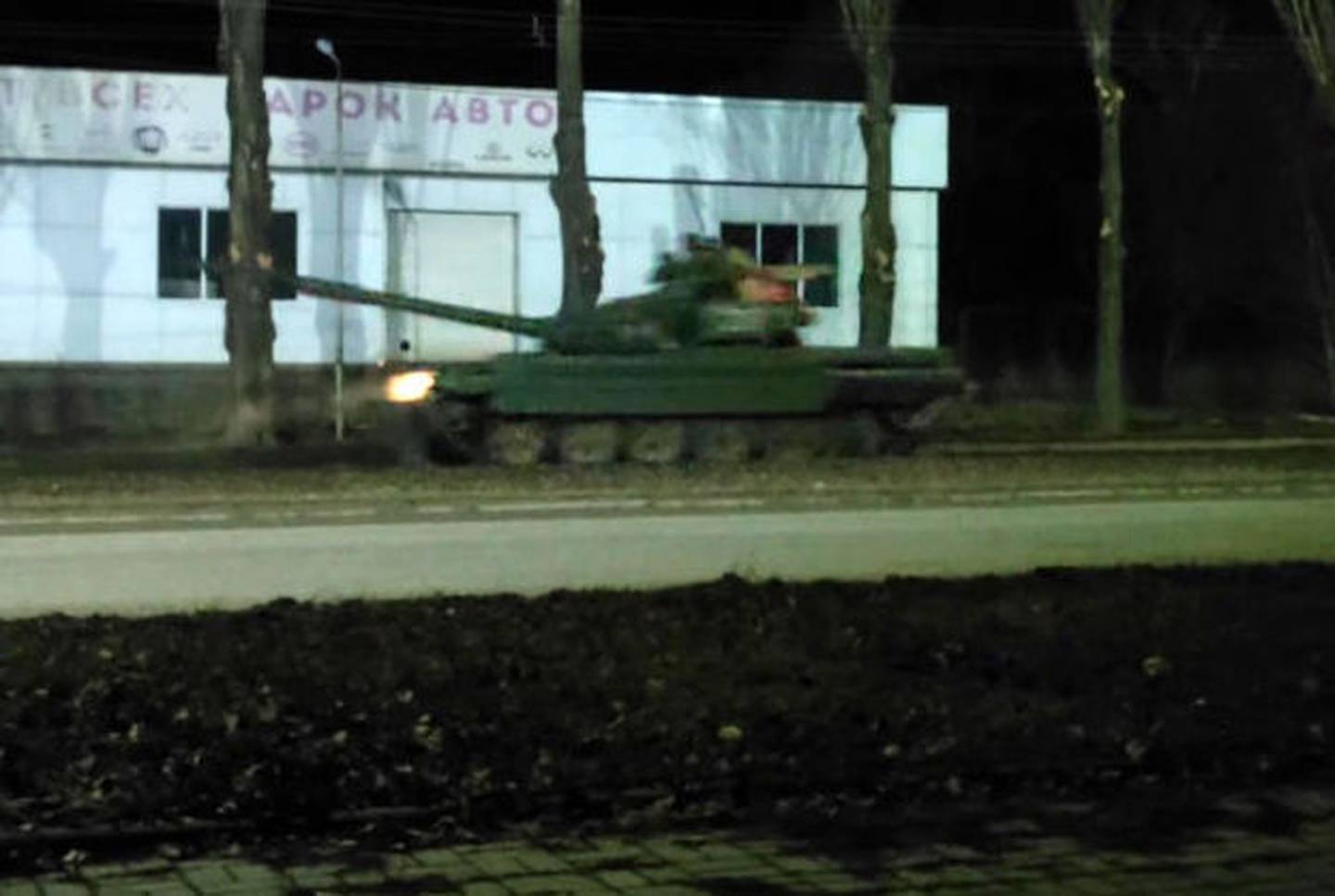 Russian military tanks advance in the Russian separatist-controlled part of the Donbas region on February 23, 2022. Photo / Getty Images