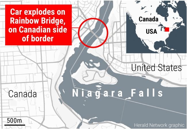 The explosion rocked the Rainbow Bridge connecting Canada and the United States.