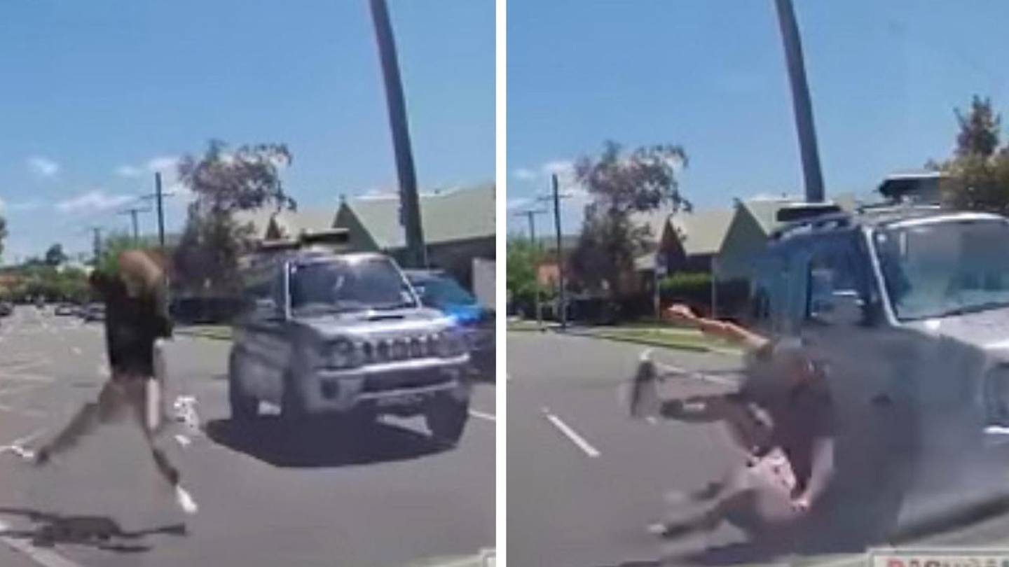 The clip, shared to the Dash Cam Owners Australia Facebook page, was filmed in New Lambton, Newcastle, and captioned: "He was fine, fortunately".Â