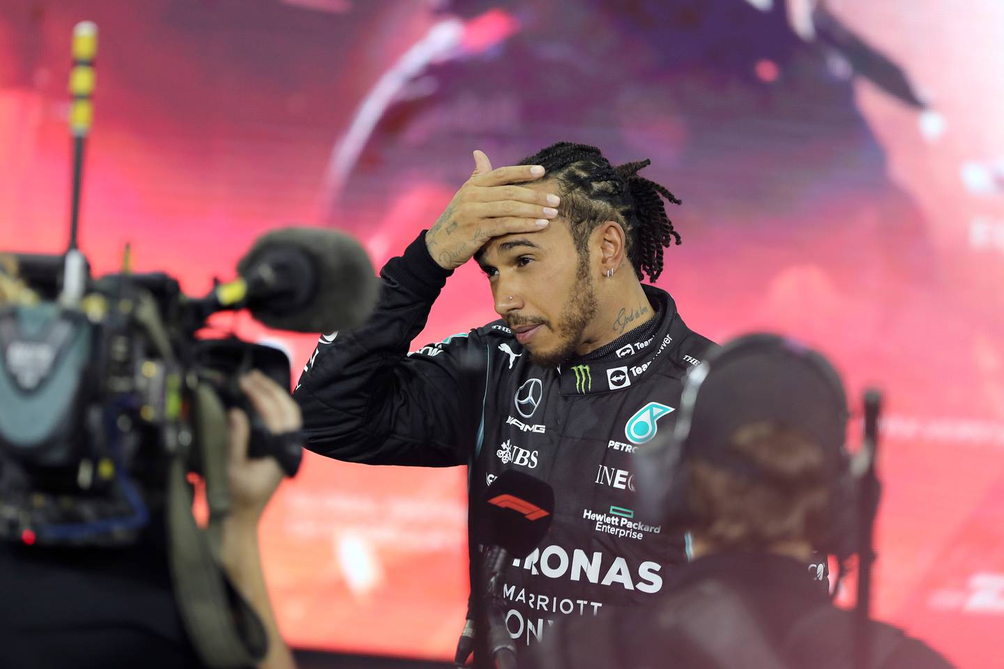 A clearly devastated Hamilton, who's shot at moving past Michael Schumacher in a record eighth world title disappeared on the final lap.