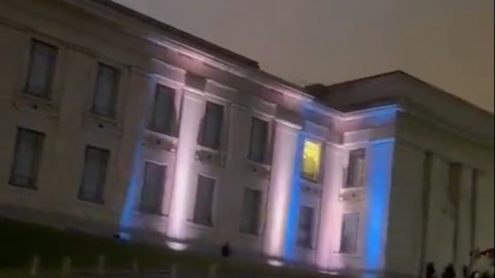 The Museum lit up with the colours of the Israeli flag last night, intending to express hope for peace.
